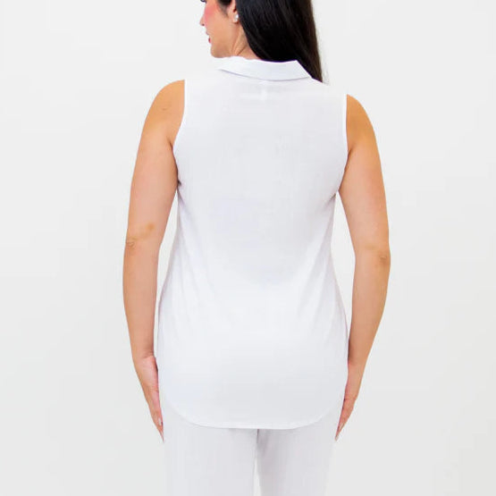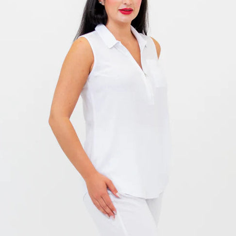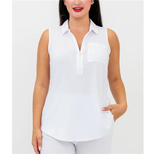 The Hula is a revolutionary tank top. Features a quarter zipper allowing for an adjustable V-neck or a collared neckline. The curved hemline gives the tank a relaxed fit. Pair with loose-fitted pants for a casual yet sophisticated look.