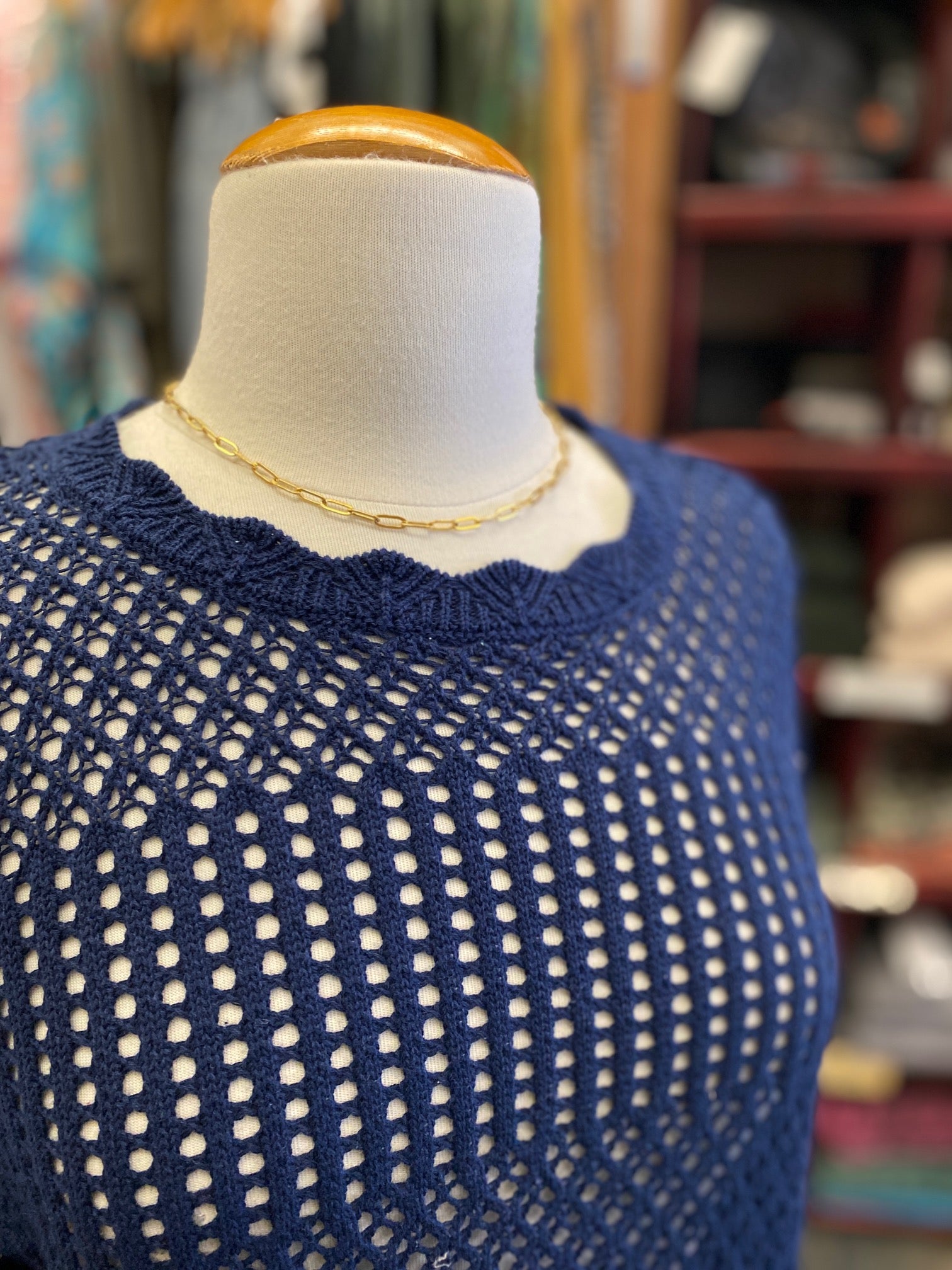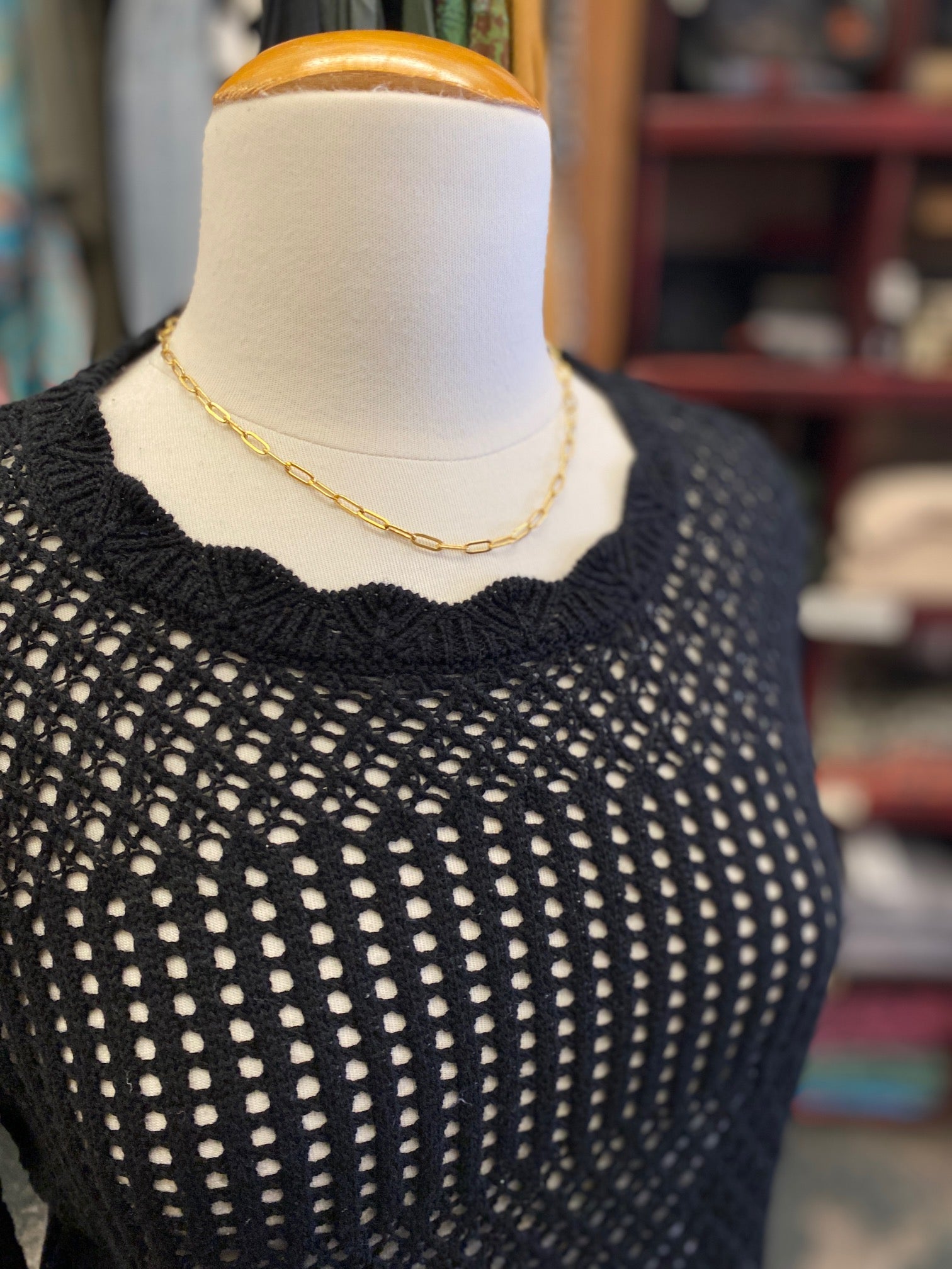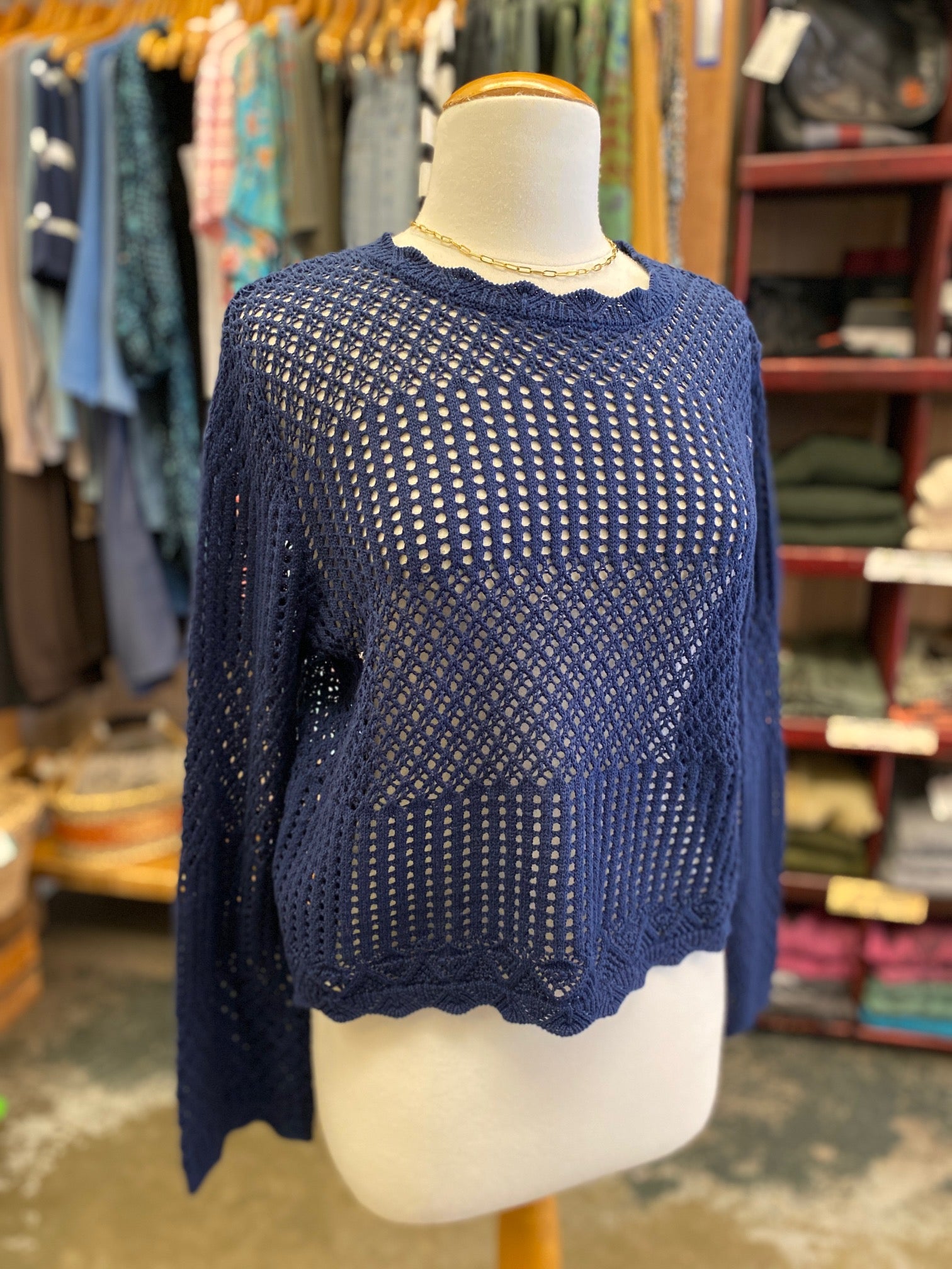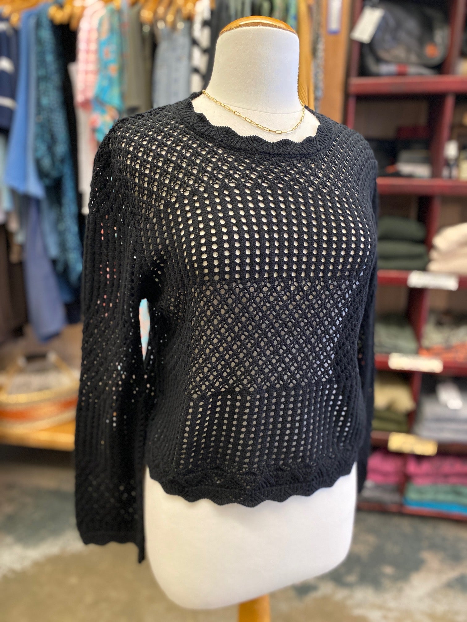 A beautiful loose knit sweater that is a great layering piece for the spring & Summer!