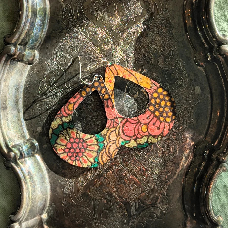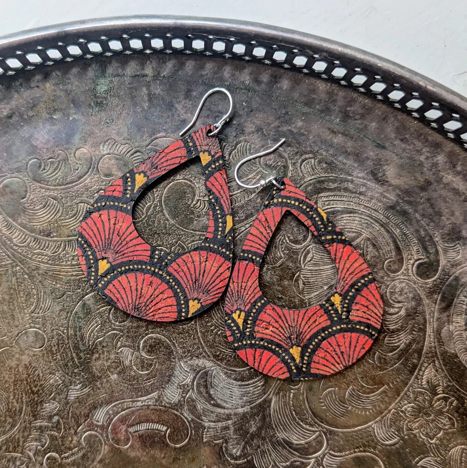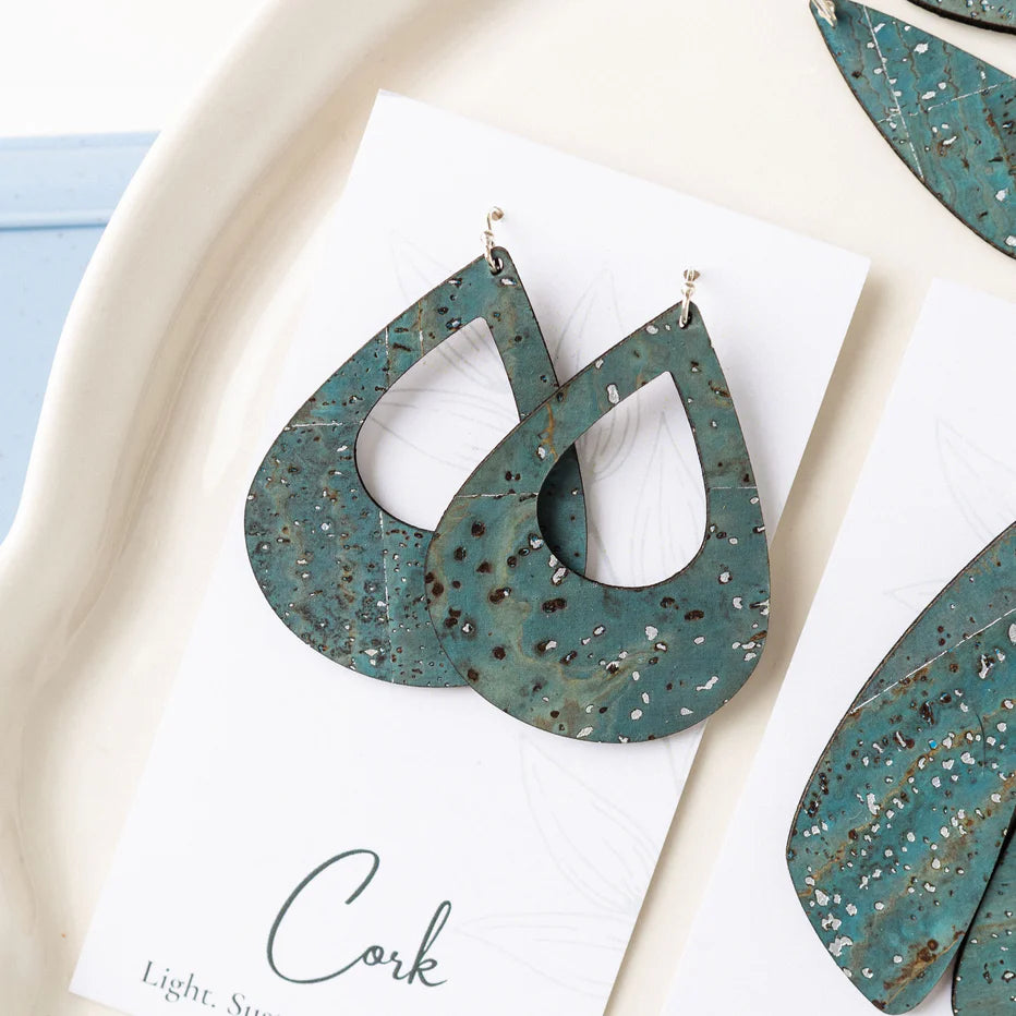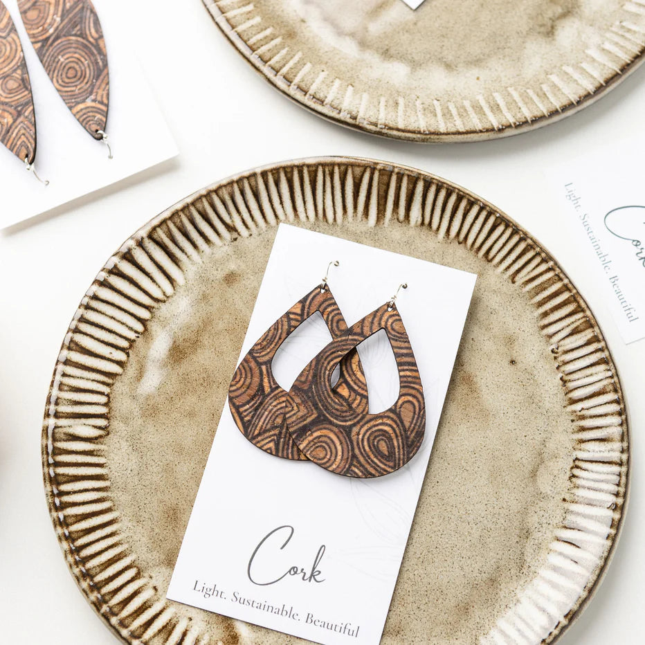 These handmade, double-sided earrings are so pretty! Soft to the touch, bold, beautiful and extremely lightweight! Each pair of earrings will vary slightly as large sheets of cork are used.