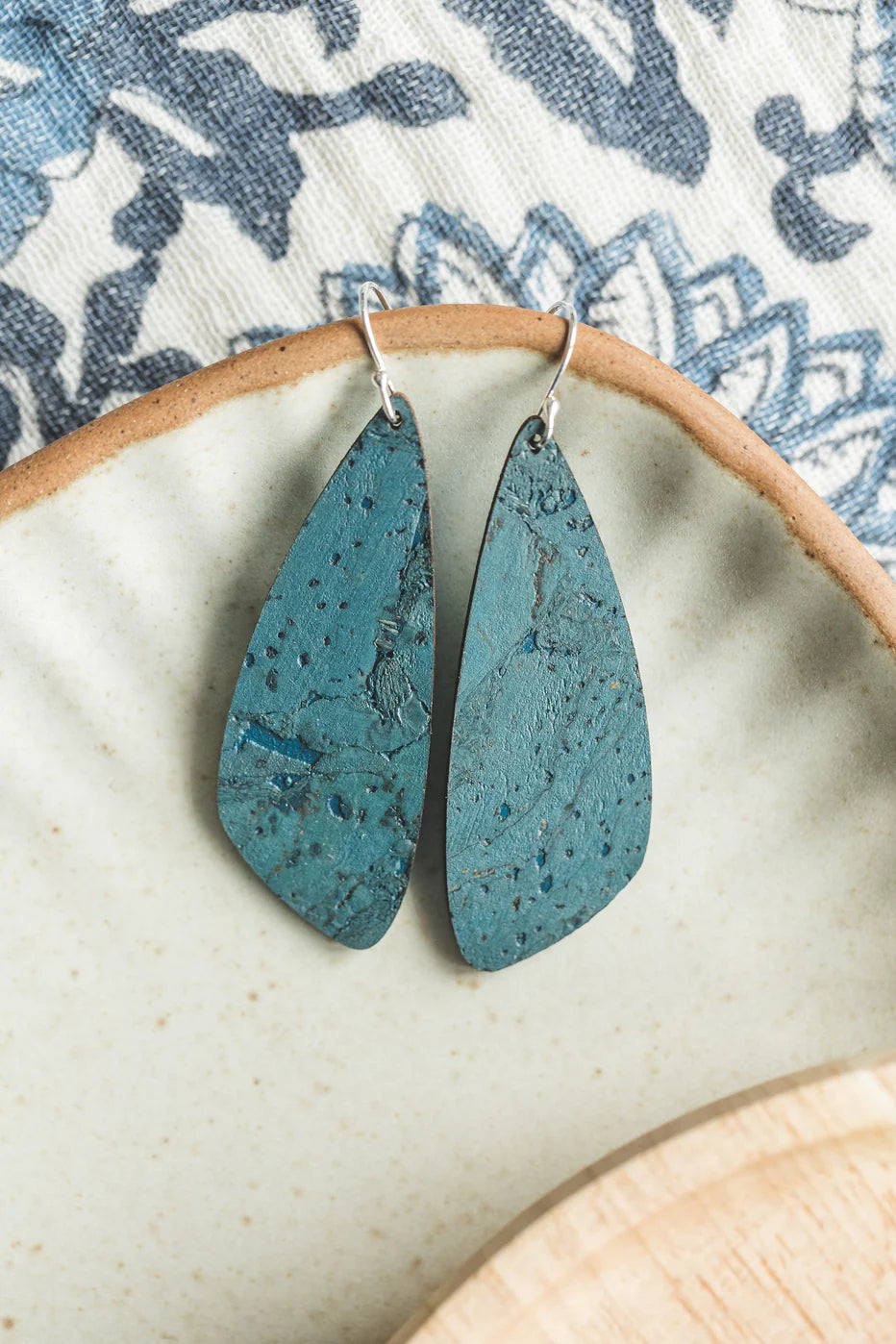 These handmade, double-sided earrings are so pretty! Soft to the touch, bold, beautiful and extremely lightweight! Each pair of earrings will vary slightly as large sheets of cork are used.
