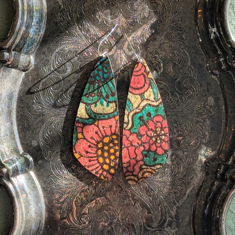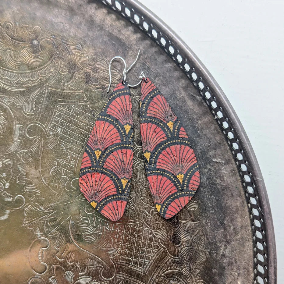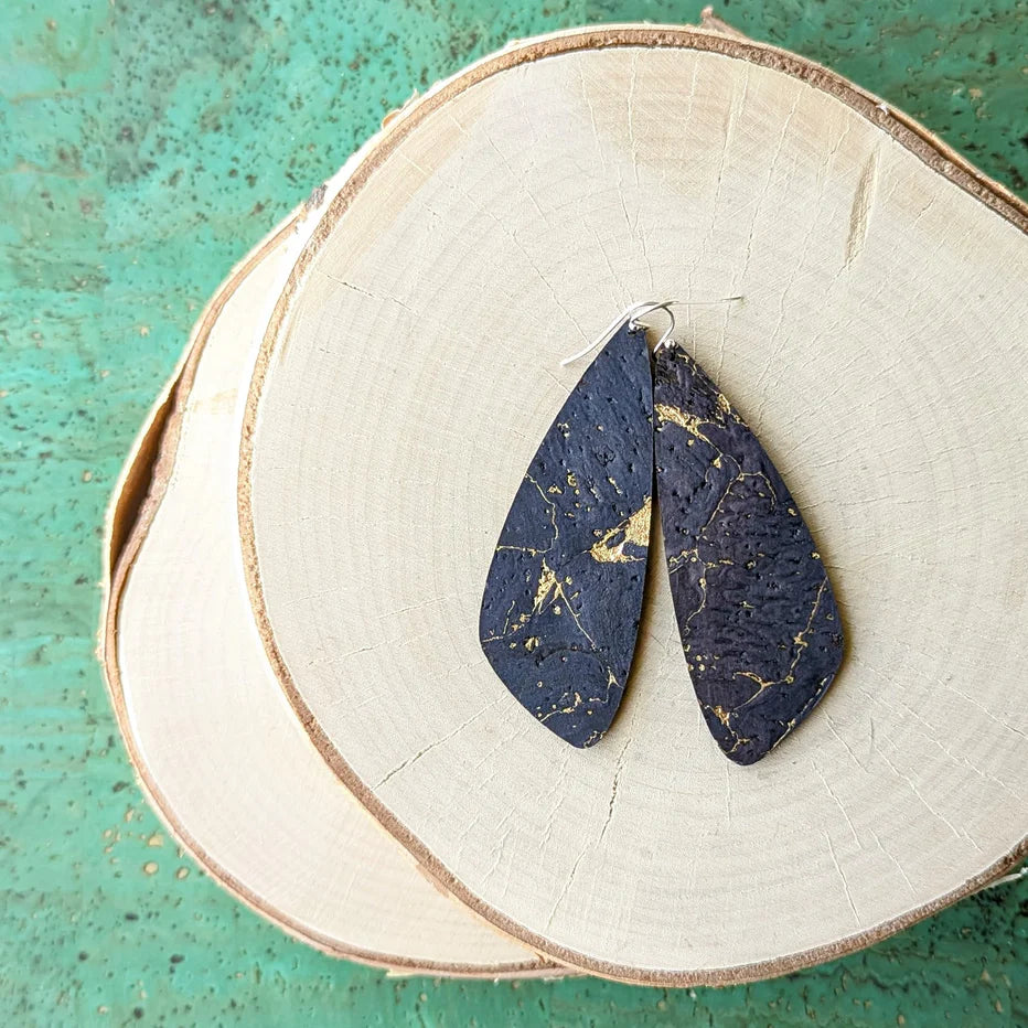 These handmade, double-sided earrings are a lovely ochre yellow with lots of natural texture, and backed with a soft navy blue.