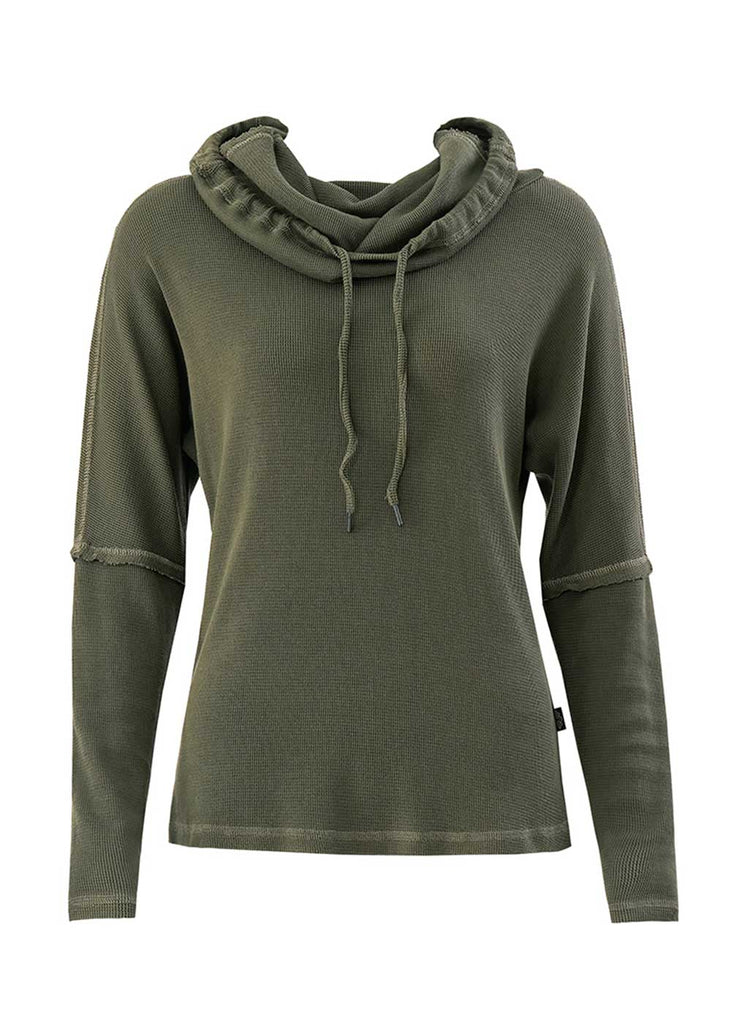 The Evoke Tee is here to provide you with all the comfort you need to sparkle your light as brightly as you can. Made with relax batwing sleeves, a dramatic cowl neck that hugs you just right and the texture of soft waffle bamboo fabric, this tee invites comfort with every wear. Made in their new GARMENT DYED fabric. The raw seams add a fun, laid back edge, to an otherwise effortless wear. Let this tee evoke the perfect balance of adventure meets cuddles by the bonfire.