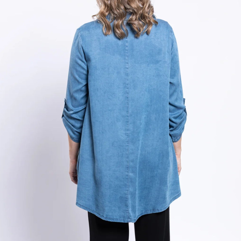 The Gill Blouse is made out of Tencel denim, making it extremely soft. With the shirt collar, front button closure, and 3/4 length sleeves this shirt is perfectly versatile for every day. The longer hem makes it easy to pair this blouse with your favourite leggings for a casual and comfortable everyday outfit.
