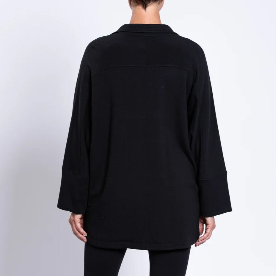 The Taran Jacket will keep you cozy and comfortable and ready to take on the day. The dolman style sleeve gives a cool casual look, while zip pockets and double zipper closure make it easy to add into your everyday wear.