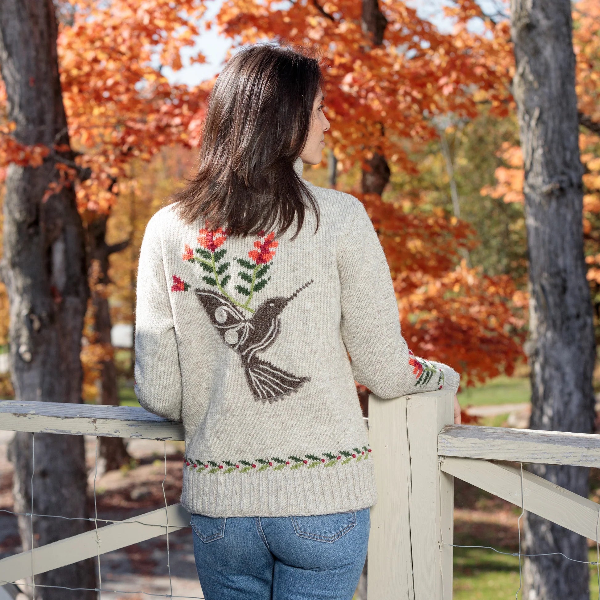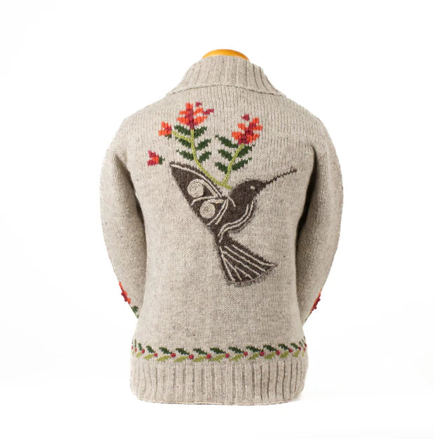 Introducing the Floral Flight Wool Sweater, where the cozy comfort of wool meets the breathtaking beauty of nature. This exquisite sweater is adorned with intricate floral embroidery, capturing the essence of the outdoors. The highlight of the design is a majestic hummingbird taking flight, transforming this garment into a wearable masterpiece that effortlessly blends warmth and style.