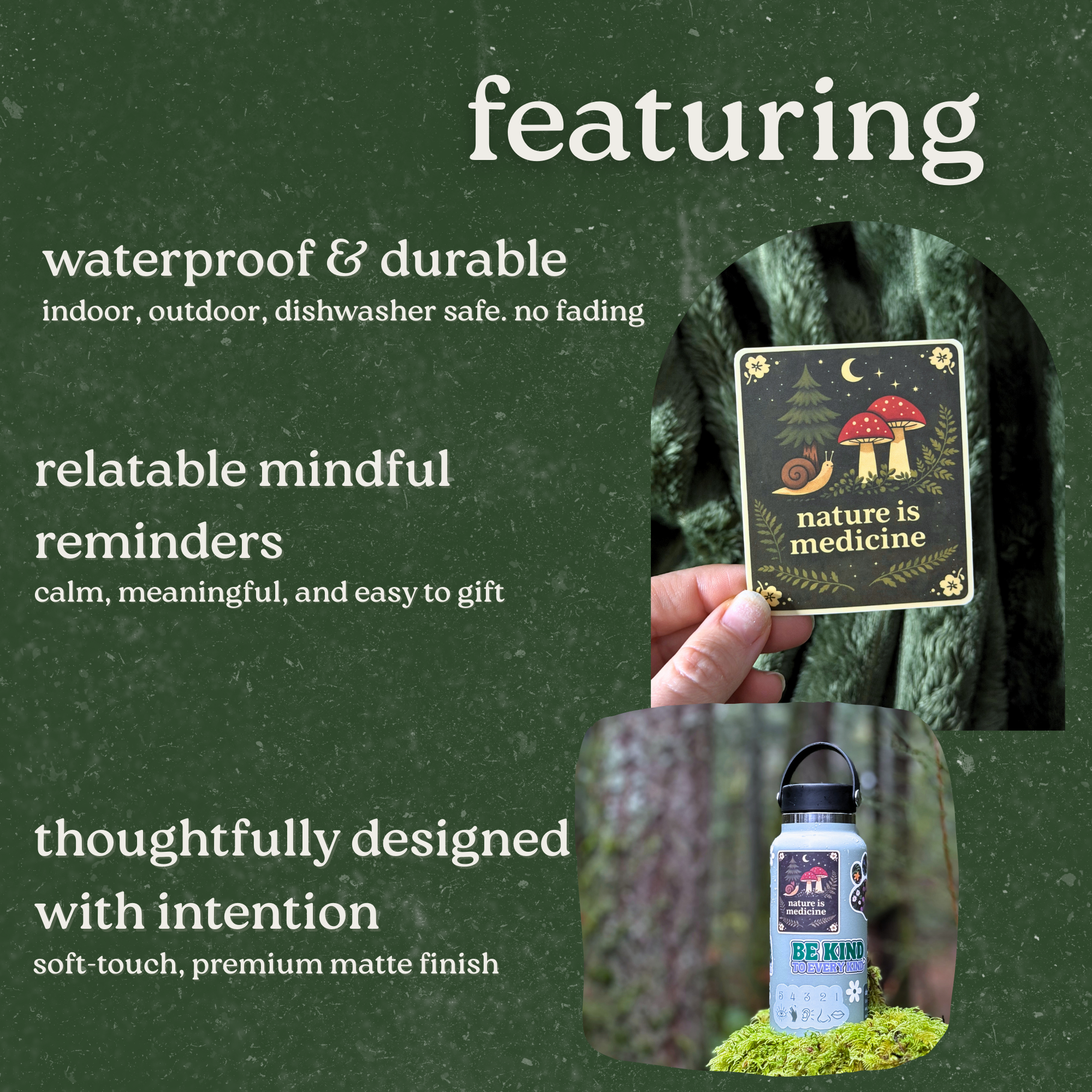Mindful over Mind Full creates nature-inspired stickers that promote mindfulness, mental well-being, and intentional living.
