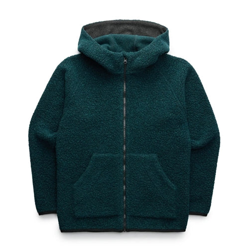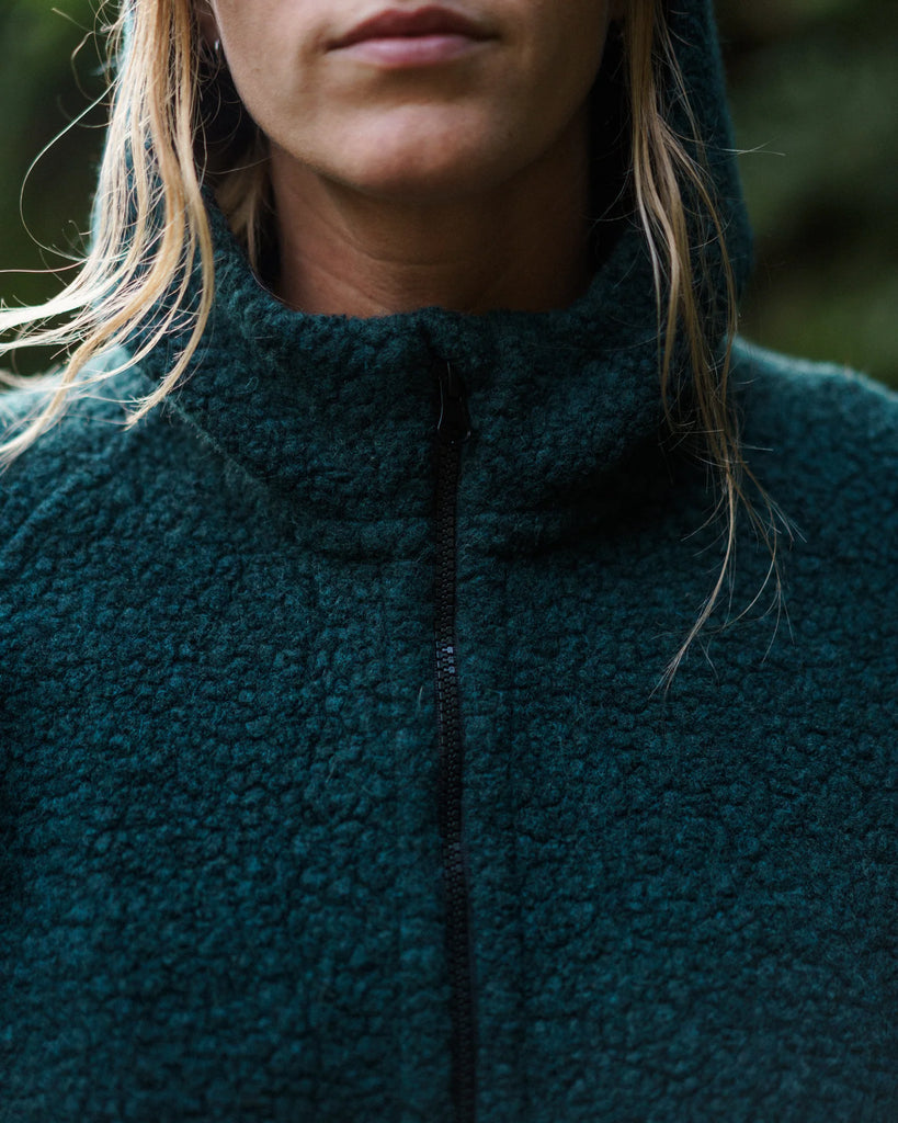From tideline to alpine, almost all of our adventures lead us into cold, wet and stormy conditions—which are exactly where high-pile Sherpa wool excels. To make an all-weather insulating hoody for everyday or far away, we sourced a soft, warm and movement-friendly recycled wool blend. The breathability and temperature regulation of the thick-knit wool—which synthetic fleeces attempt to imitate—give it exceptional comfort and performance when worn on its own or as a midlayer under a shell, and the Melton-lined hood keeps the wind at bay. A fleece storm flap offers extra warmth, while our unique production process with no added dyes helps further reduce environmental impact.